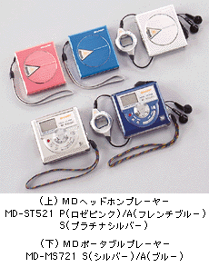 | 1. | 充電池1本で、業界最長の再生時間を実現 省電力化設計と高性能リチウムイオン充電池の採用により、再生専用機(MD−ST521)は、充電池1本で約11時間再生、乾電池との併用で約20時間の連続再生が可能。また、録再機(MD−MS721)は約10時間再生/約8時間録音を実現しました。 |
