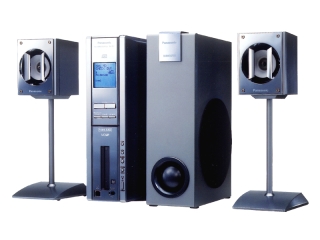 独自のディスクガイド付きCDトレイの採用で本体の縦/横置きは自由。設置方向に合わせて、液晶表示画面も切り換わります。また、フロントスピーカーのスタンドは取り外し可能なので、スペースに合わせて、コンパクトに設置できます。 |