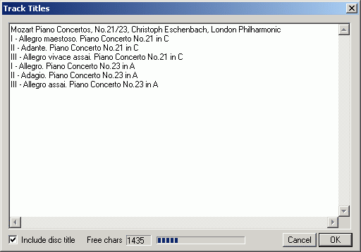 paste an entire track set from another program such as a CDDB database.