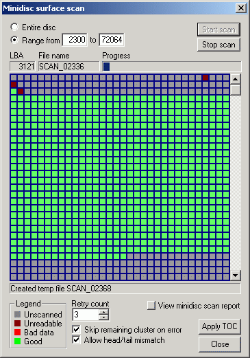 | The minidisc surface scan facility goes a long way to